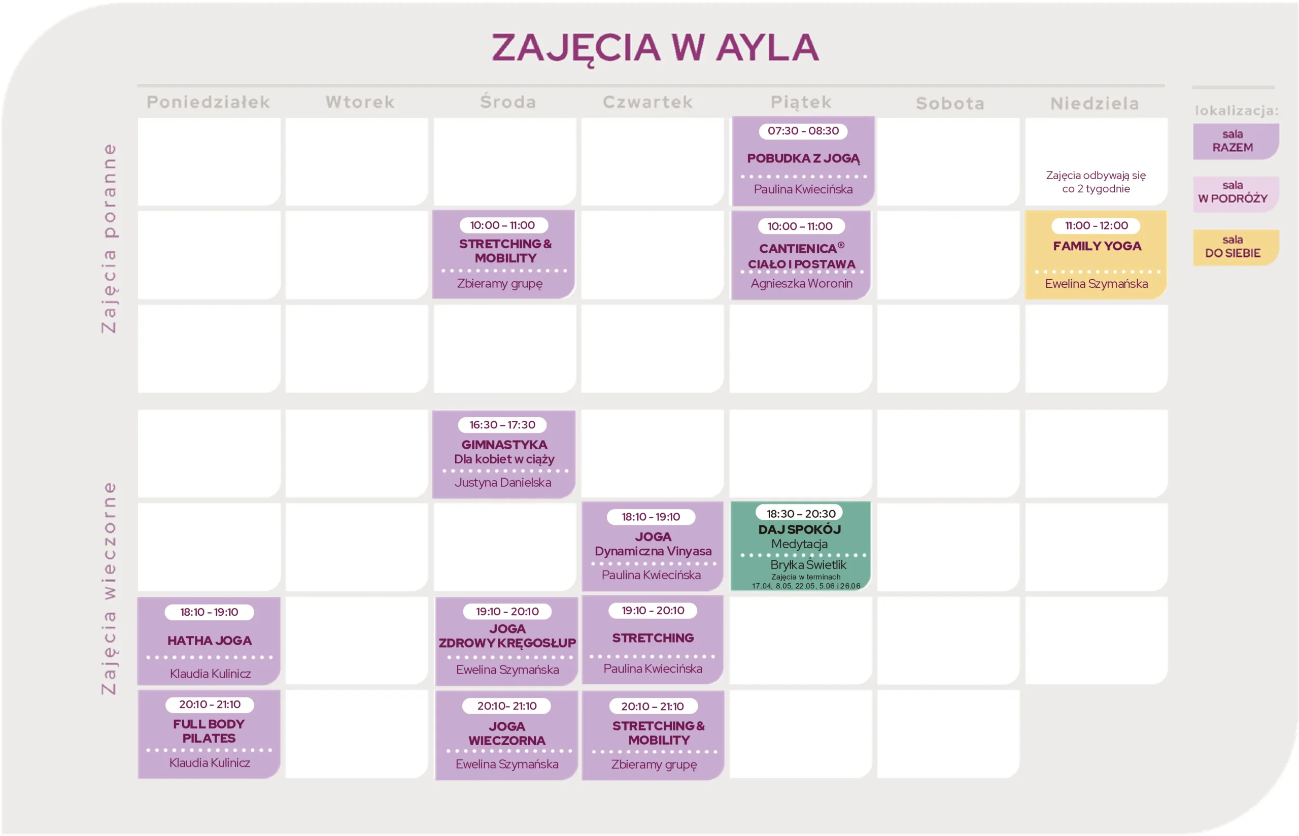 Podążaj swoim rytmem na zajęciach dopasowanych do Twoich potrzeb. Joga, a może taniec intuicyjny? Odnajdź swoją przestrzeń równowagi.
